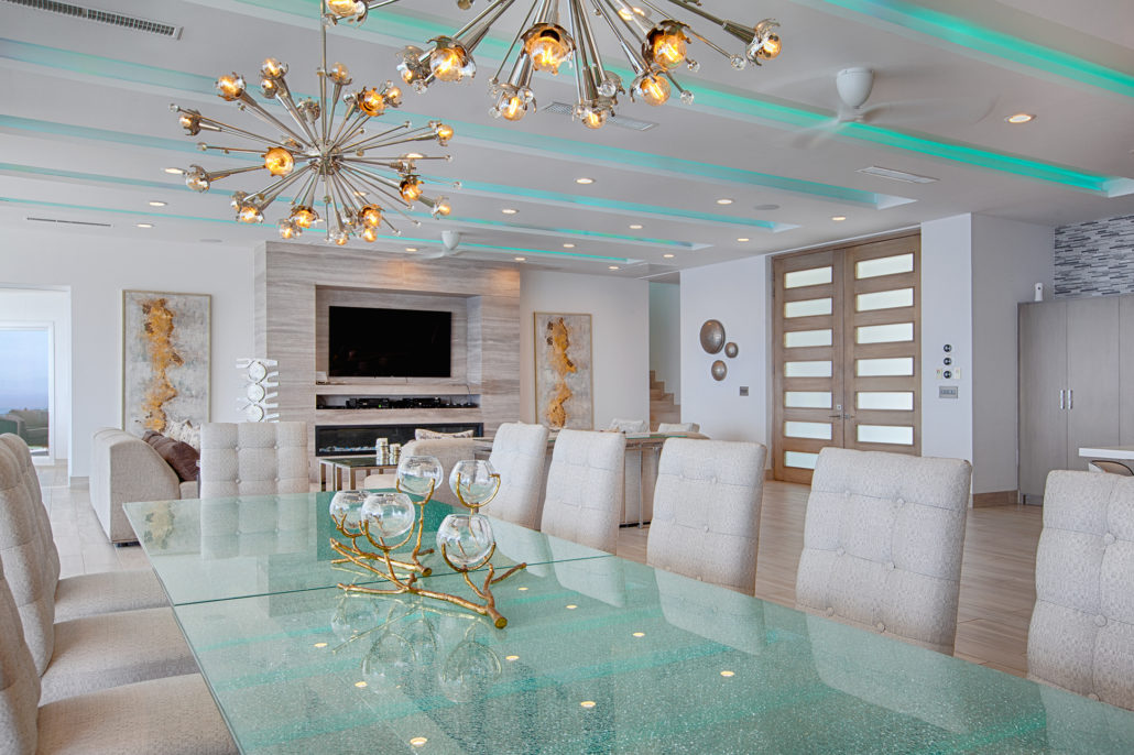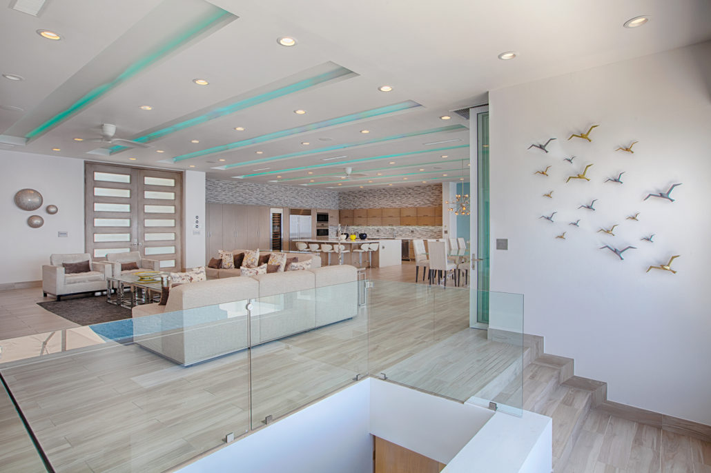 Villa Lands End is complete with quartz countertops, professional gourmet kitchen with sub-zero, Thermador, Bosch appliances; central air condition, nine smart televisions with satellite service, indoor/outdoor stereo system with satellite radio + iPod hook-up.